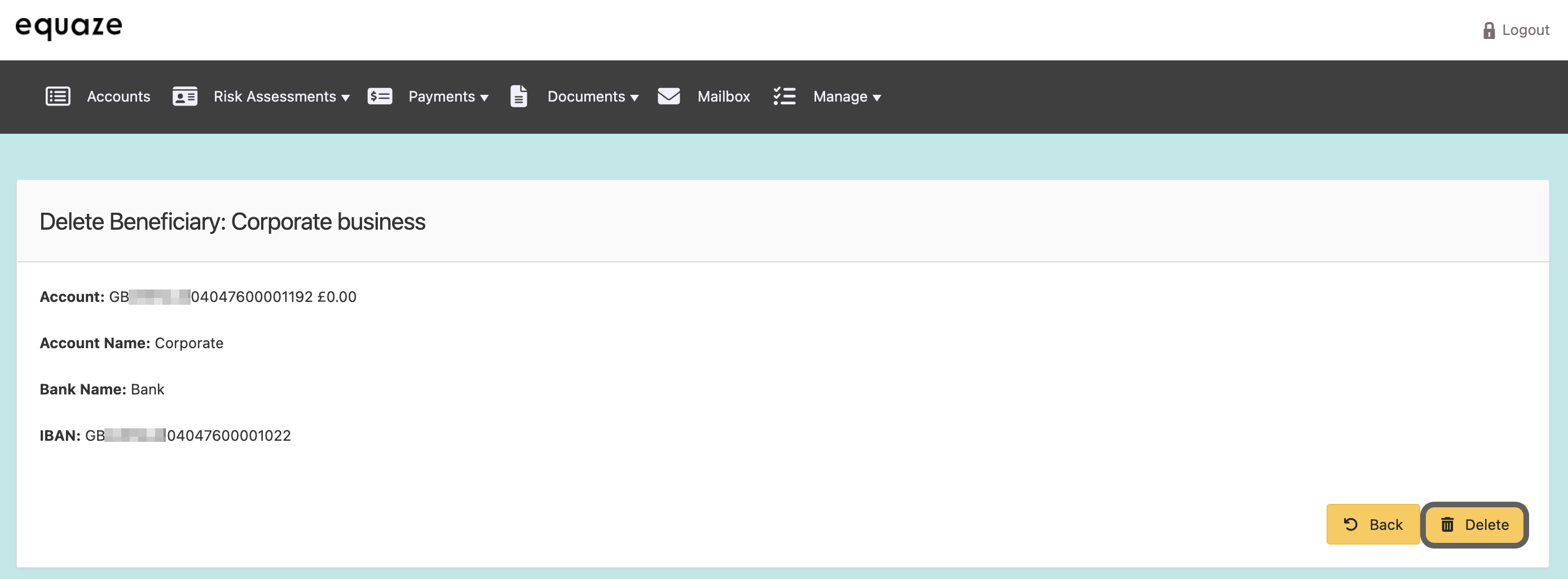 In the Delete Beneficiary page, click Delete to start the deletion process.