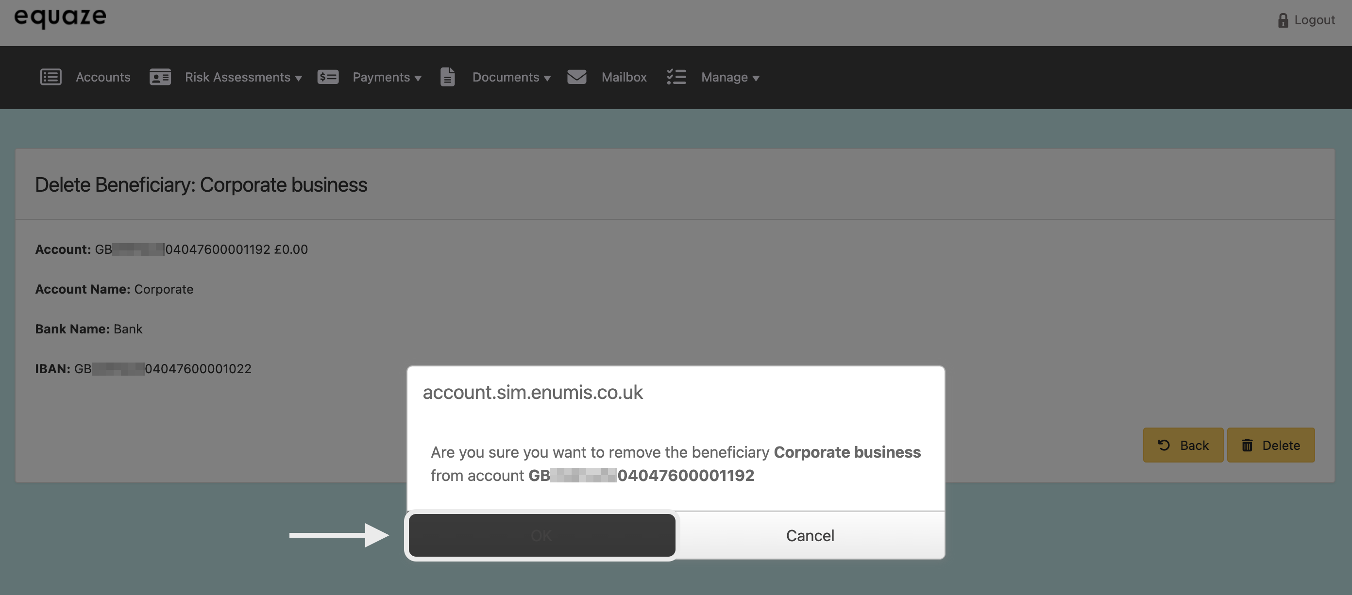 A message dialogue box then appears to confirm your choice. Click OK to finalise your selection and redirect you to the Manage Beneficiaries page.