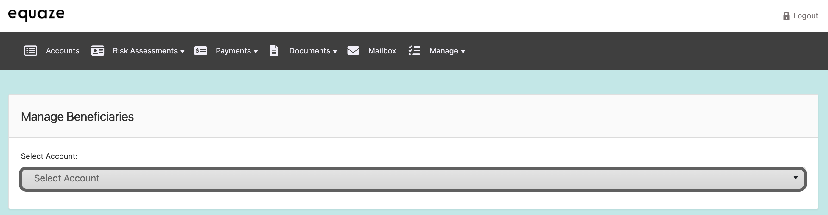 Click on the “Select account” dropdown list on the “Manage beneficiaries” page.