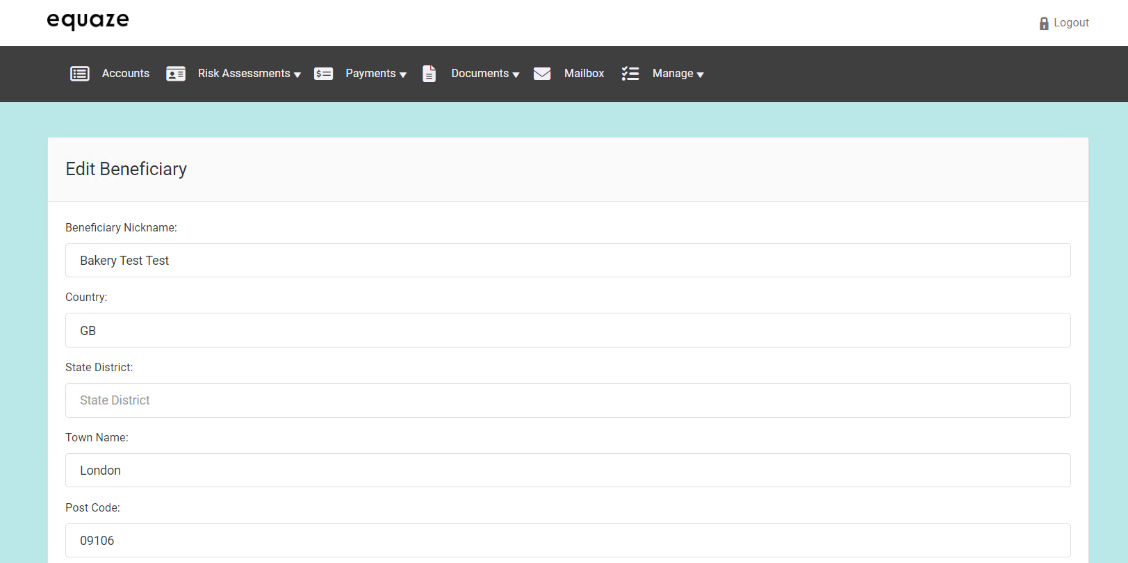 Editing Beneficiary Post Code: