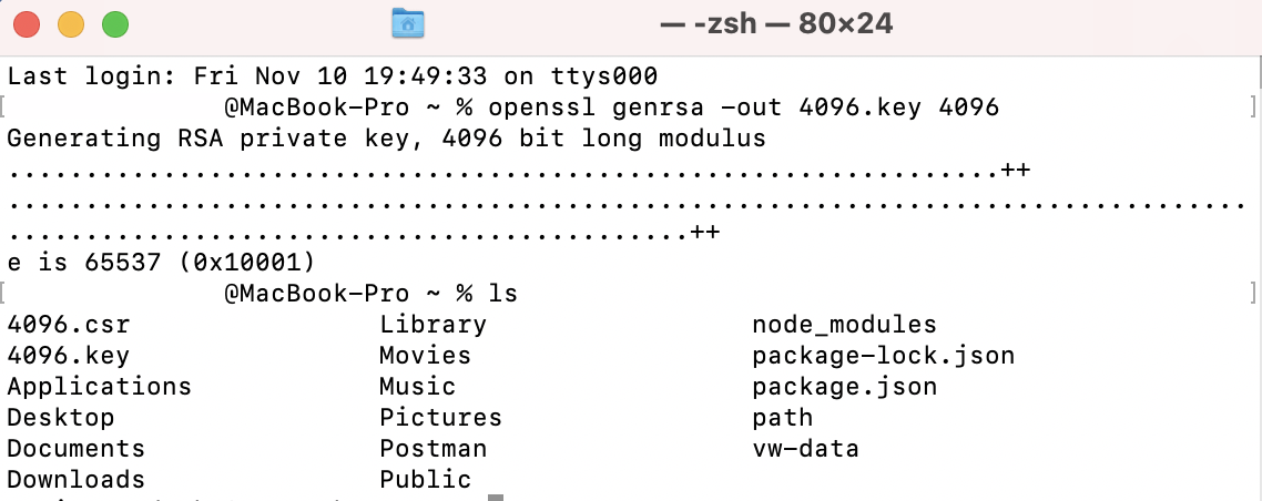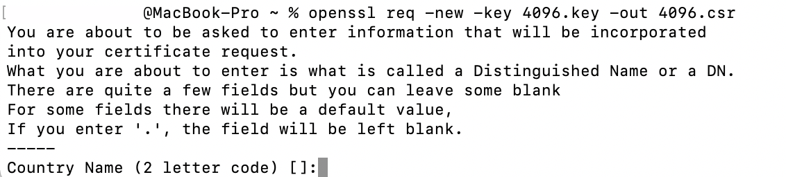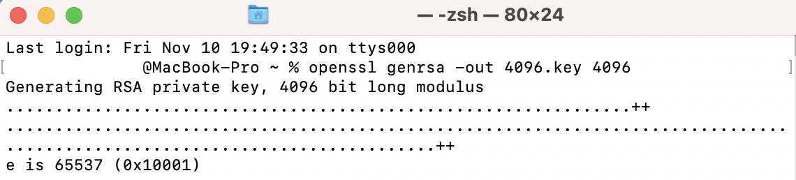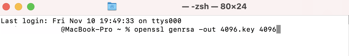 In the Terminal, type the following command: openssl genrsa -out 4096.key 4096